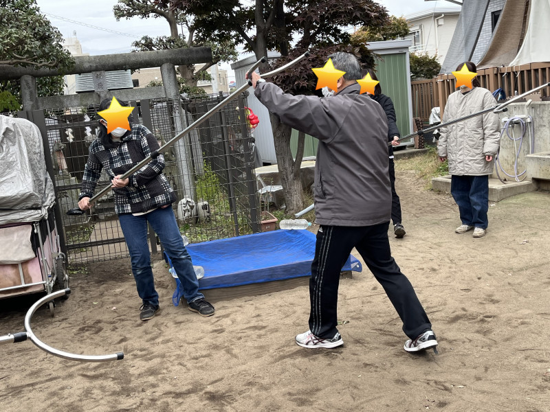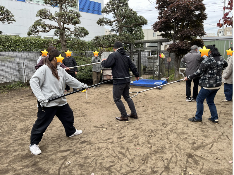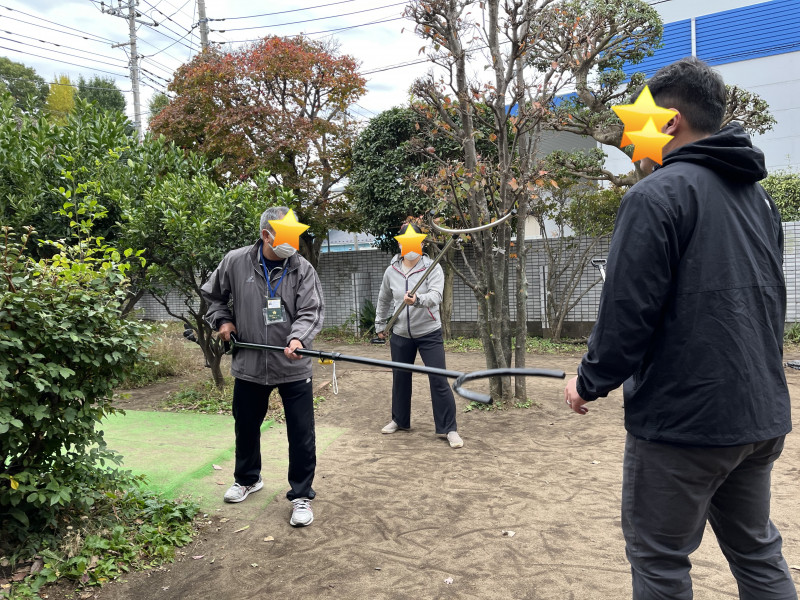 その後は、実際に職員がさすまたを持ち、正しい使い方や安全な距離の取り方の実技演習を行いました。