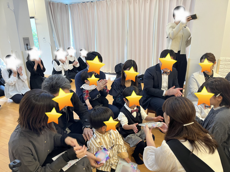 みんなで一緒に過ごす時間は終わるけれど、新しい園でも自分らしさを大切に大きくなっていってほしいという願いを込めて、お祝いの会を行いました。