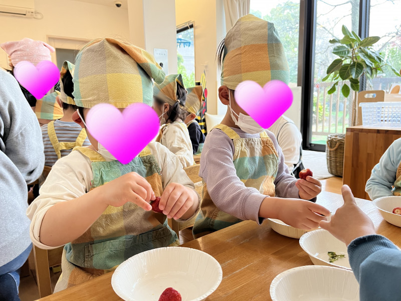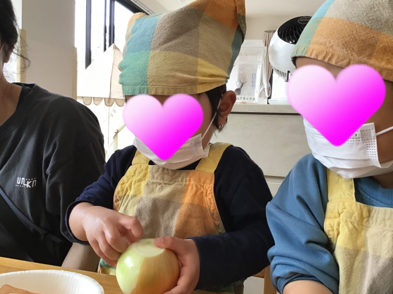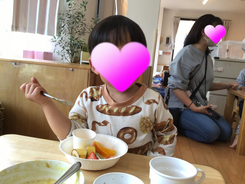 お腹いっぱいカレーを食べるにはどうしたらいいかなぁと子どもたちに聞いたところ、「いっぱい食べられる量を作ればいいんじゃない?」ということで、カレークッキングを計画。おまけでみんなの大好きなフルーツもお腹いっぱい食べられるようフルーツバイキングもしました。