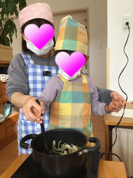 進級前最後のクッキング。お腹いっぱい食べられて大満足だったようです。